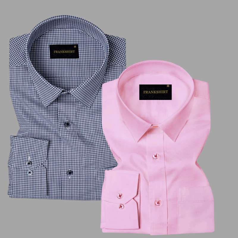 Pack of 2 Premium Cotton Shirt for Man (Navy Blue Check and Light Pink)